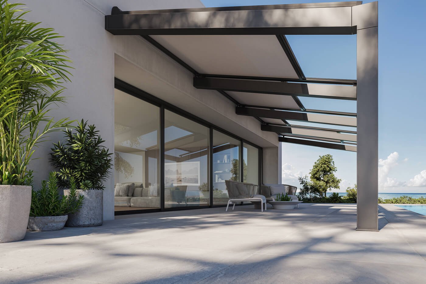 Ogni soluzione è studiata per offrire protezione dai raggi UV, migliorare il comfort outdoor e integrarsi armoniosamente con l’architettura.