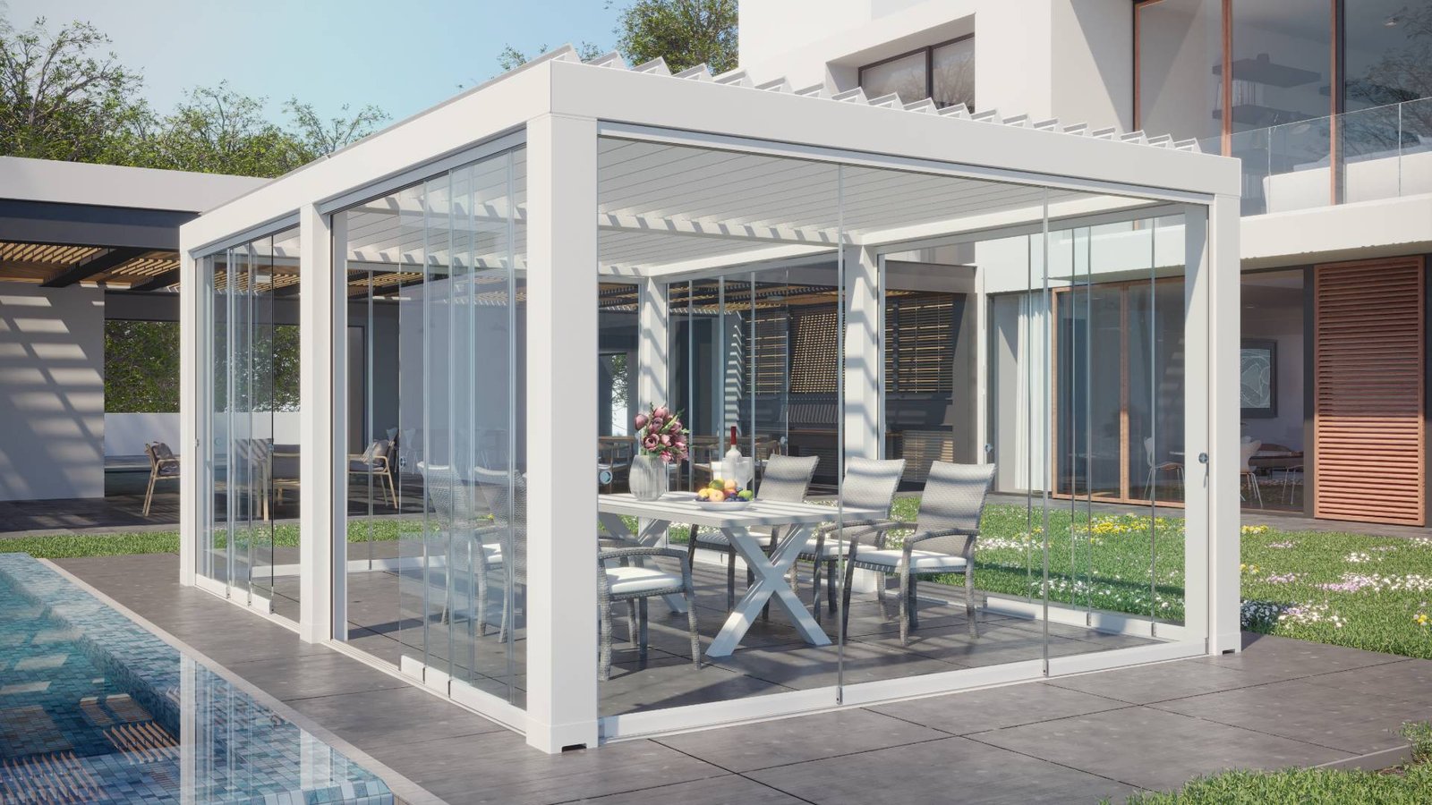 Pergole bioclimatiche, tettoie e vele ombreggianti per giardini